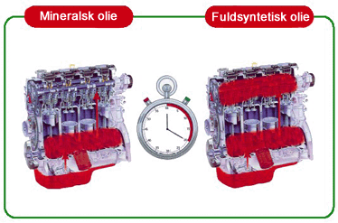 alle motorens dele. En tykkere olie vil selv efter 20 sekunder